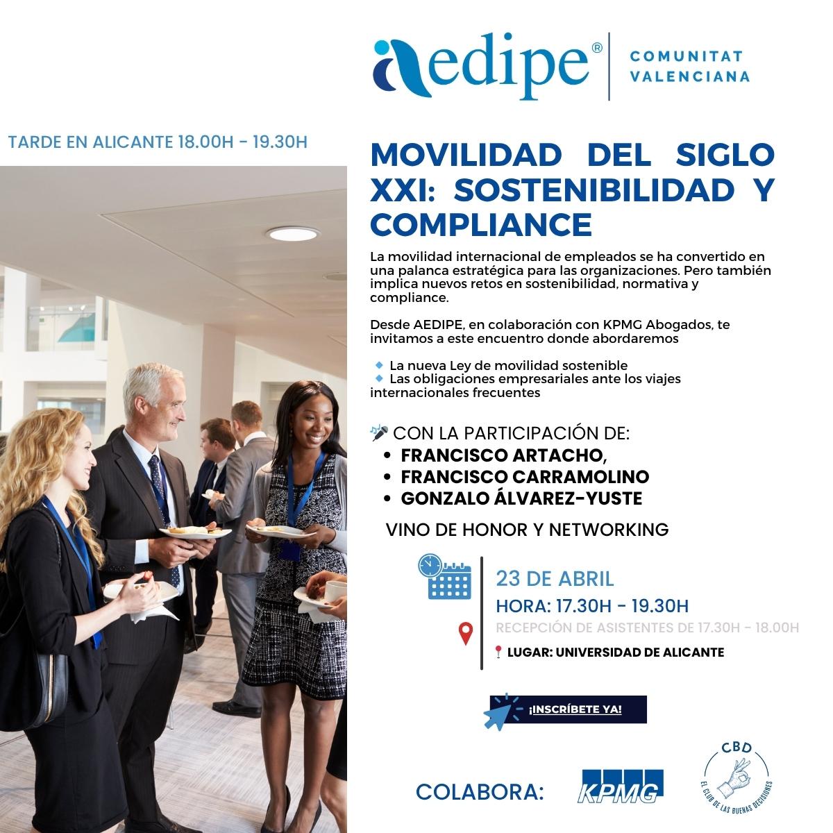 La asociación AEDIPE Comunidad Valenciana celebrará el próximo 23 de abril, de 17:30 a 19:30 horas, la jornada “Movilidad del siglo XXI: sostenibilidad y compliance”, un encuentro dirigido a profesionales de Recursos Humanos y directivos interesados en comprender los nuevos retos asociados a la movilidad internacional de empleados. La sesión […]